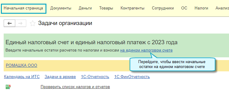 Подробнее о формировании начального остатка на ЕНС см. в Статье.