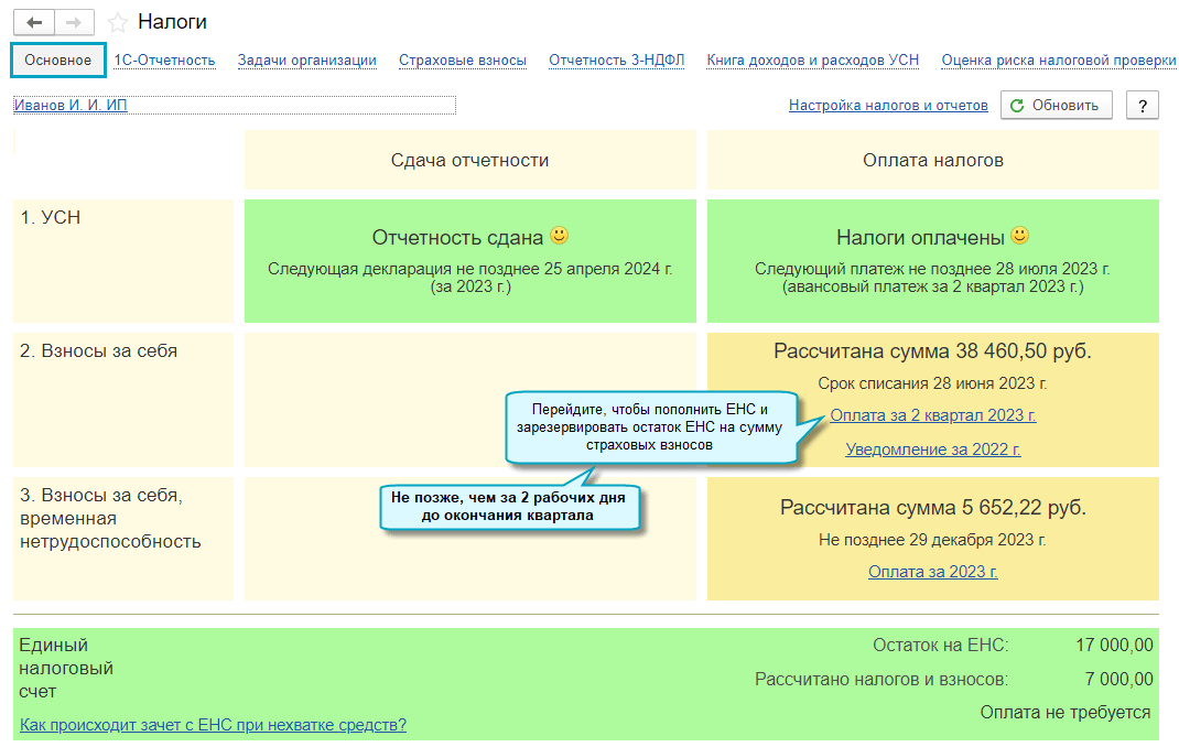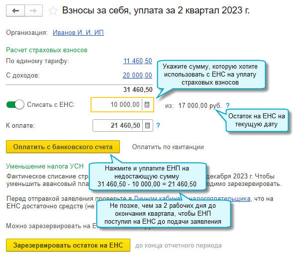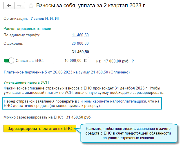 Повышена прозрачность схемы действий по резервированию остатка ЕНС на страховые взносы ИП за себя, если они уплачены досрочно.