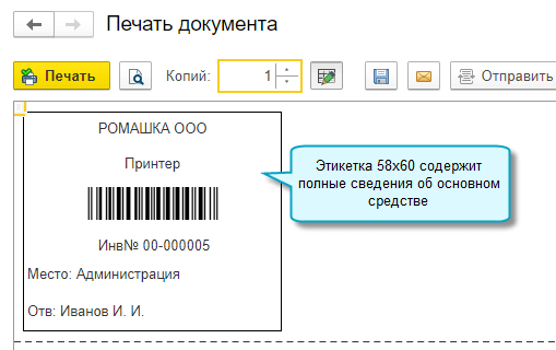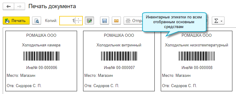 Добавлена возможность распечатать инвентарные этикетки со штрихкодами сразу по всем или отобранным основным средствам. Функционал доступен в полном интерфейсе.