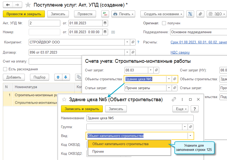 В карточке объекта строительства потребуется указать, что он является объектом капитального строительства.