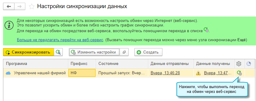 Если уже есть настроенный обмен, и вы хотите изменить расписание автоматического обмена, то сначала выполните переход на обмен через веб-сервис.