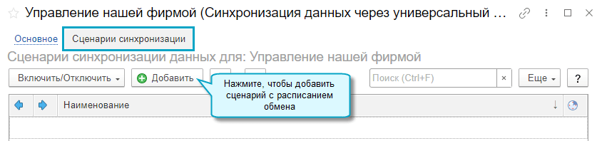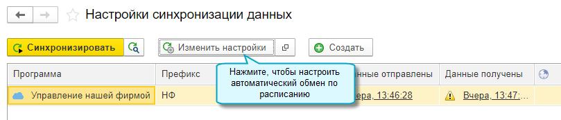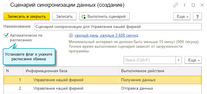Для вновь создаваемых обменов сразу можно задать расписание обмена.