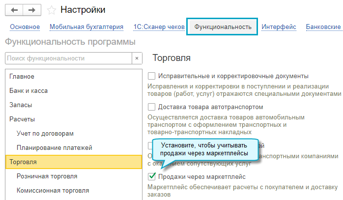 Для учета продаж через маркетплейсы выполните следующую настройку: