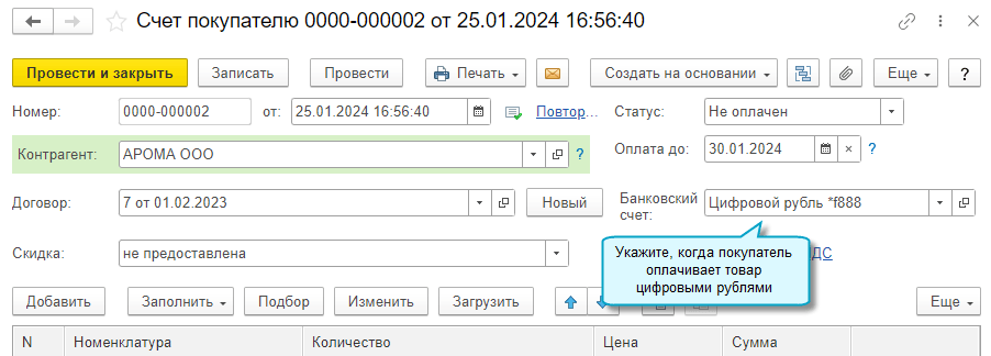 Документы по поступлению и списанию цифровых рублей требуется вводить вручную. В них недоступны виды операций, связанные с расчетами по кредитам, займам и депозитам, снятием и пополнением наличными, приобретением и продажей иностранной валюты и оплатой по платежным картам, в силу ограничений, установленных законом или правилами платформы цифрового рубля.