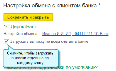 Аналогично настраивается возврат к загрузке по всем счетам в банке.