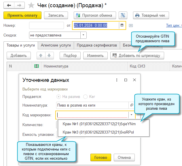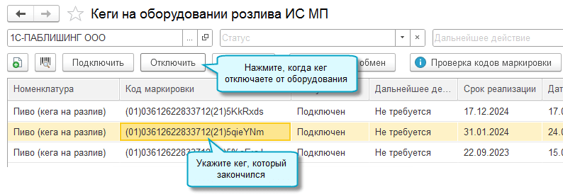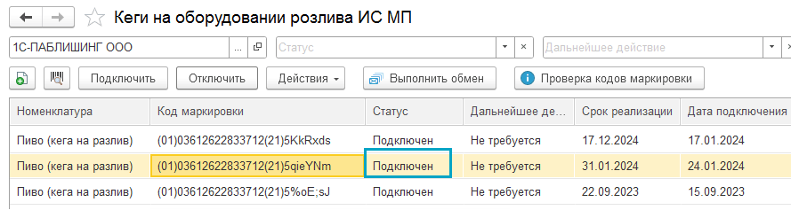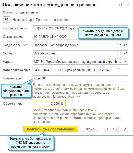 Добавлена возможность передавать в ГИС МТ сведения о подключении пивного кега к оборудованию для розлива.
