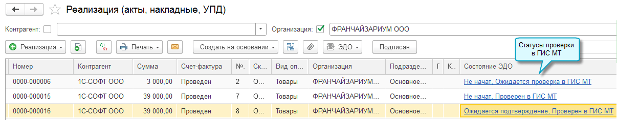 Добавлено отслеживание статусов УПД, УКД в ГИС МТ.