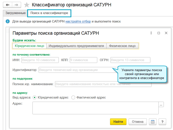 Классификаторы загружаются выборочно. При загрузке указывайте параметры поиска.