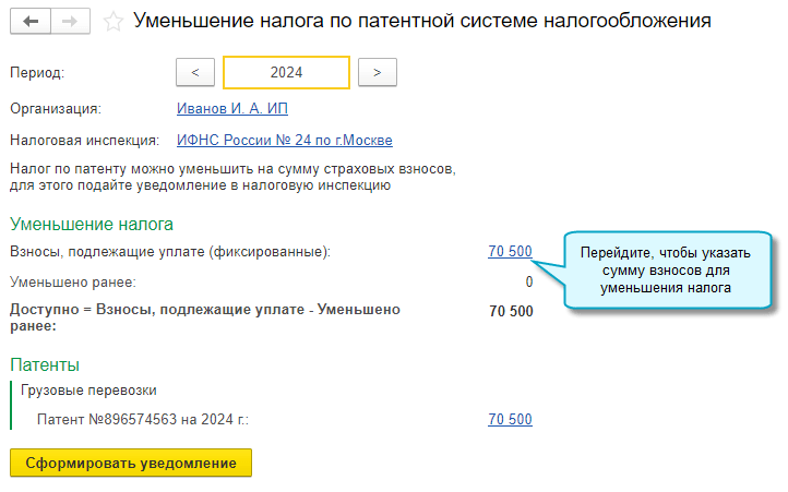 На остаток взносов с доходов 2024 г. в сумме 10 500 руб. можно будет уменьшить стоимость патента в 2025 году.