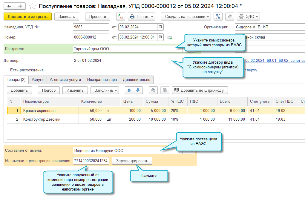 О заполнении комиссионером заявления о ввозе товаров см. здесь.