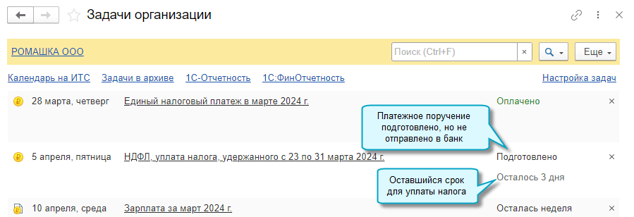 Теперь можно отслеживать промежуточные состояния по задачам организации, связанным с оплатой: платежное поручение подготовлено, отправлено или отклонено.