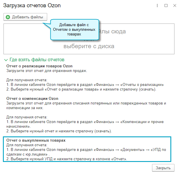 Добавлена возможность загружать из файла отчет OZON о выкупленных им товарах.