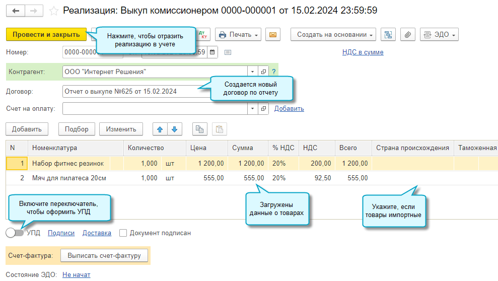 Уплаченные суммы налогов загружаются автоматически из Личного кабинета ФНС в документы Сведения об уплате налогов, если подключен сервис 1С-Отчетность, иначе - их требуется вводить вручную. Напоминаем, что воспользоваться загрузкой уплаченных налогов вы сможете, если подключитесь к 1С-Отчетности по специальному тарифу "Промо ЕНС" на 6 месяцев.