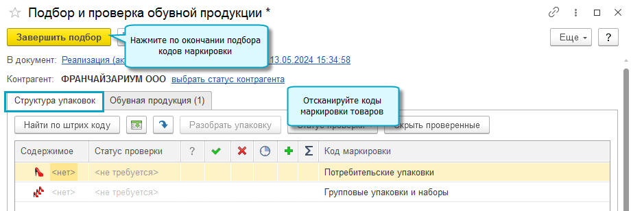Информация о кодах маркировки по приобретенным товарам загружается при получении документов от поставщика по ЭДО.