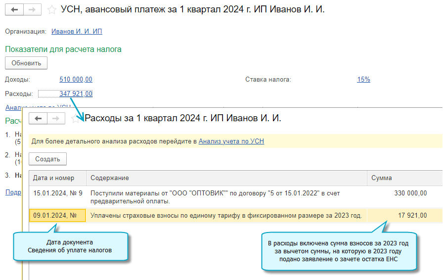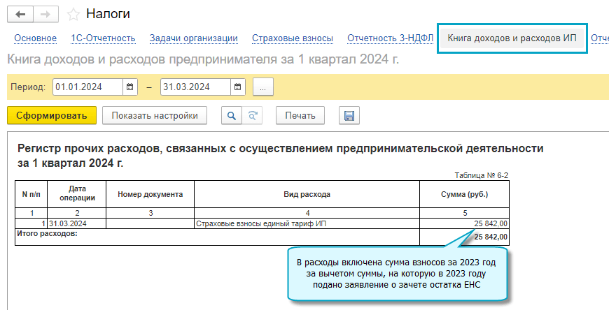 С 2024 года взносы не включаются в расходы по заявлениям о зачете остатка ЕНС в счет предстоящей обязанности по уплате страховых взносов. Если в 2023 году сдавались в ИФНС такие заявления, то в расходы 2024 года включается остаток страховых взносов за 2023 год, не вошедший в них.