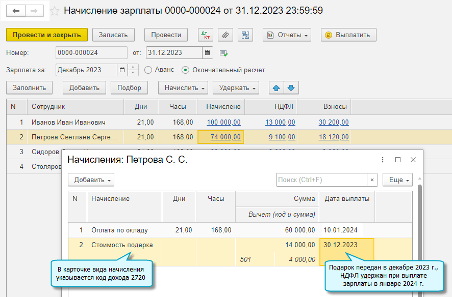 В форме 6-НДФЛ теперь расшифровывается НДФЛ с декабрьских подарков, удержанный при выплате зарплаты в следующем году.