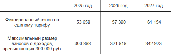 Установлены размеры страховых взносов индивидуальных предпринимателей за себя на 2025, 2026 и 2027 годы (Федеральный закон от 08.08.2024 № 259-ФЗ).