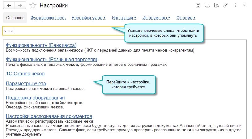 Добавлена возможность поиска настройки по ключевым словам.