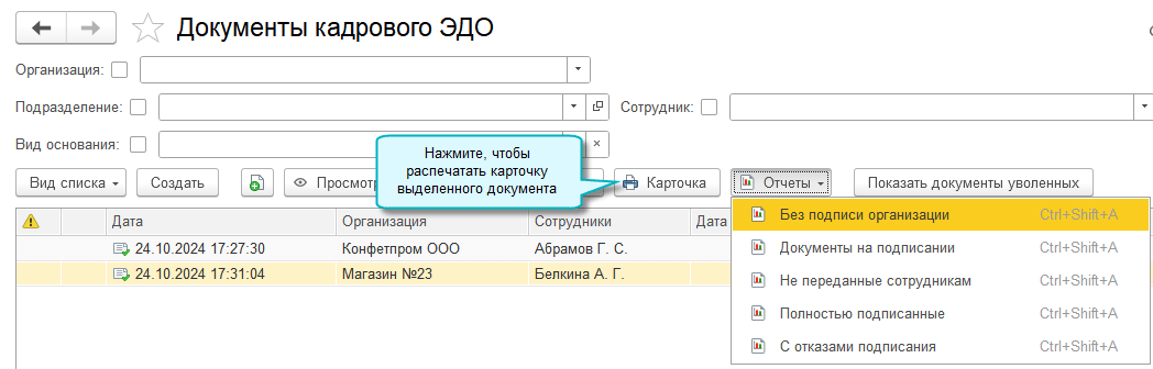 Добавлены отчеты о состоянии документов кадрового ЭДО.