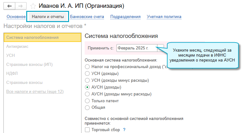 Переход на АУСН с 1 числа любого месяца года с 01.01.2025