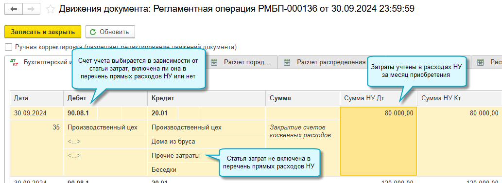 Рекомендуем перепровести ранее веденные документы и выполнить повторное закрытие месяца, если ранее стоимость малоценных НМА в бухгалтерском учете была включена в стоимость НЗП или запасов.