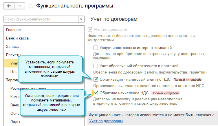 Добавлена возможность учитывать НДС по договорам на реализацию металлолома, вторичного алюминия и сырых шкур животных, организациям и ИП, которые начисляют НДС, применяя УСН.