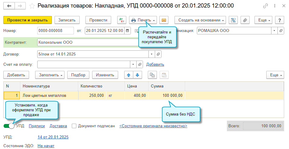 3. Оформите счет-фактуру с товарной накладной или УПД со статусом 1 при отгрузке товара.
