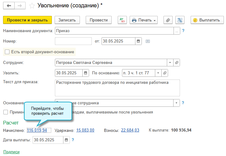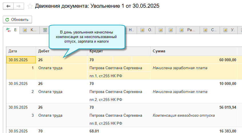 Теперь при увольнении сотрудника рассчитывается и начисляется компенсация за неиспользованный отпуск и зарплата за последний месяц.