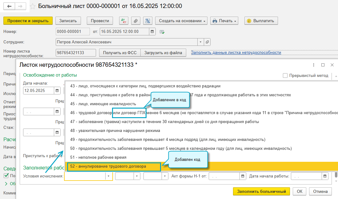 Поддержана версия СЭДО 2.43 от 12.12.2024. Изменился список условий исчисления в больничном листе и ответе на запрос СФР.