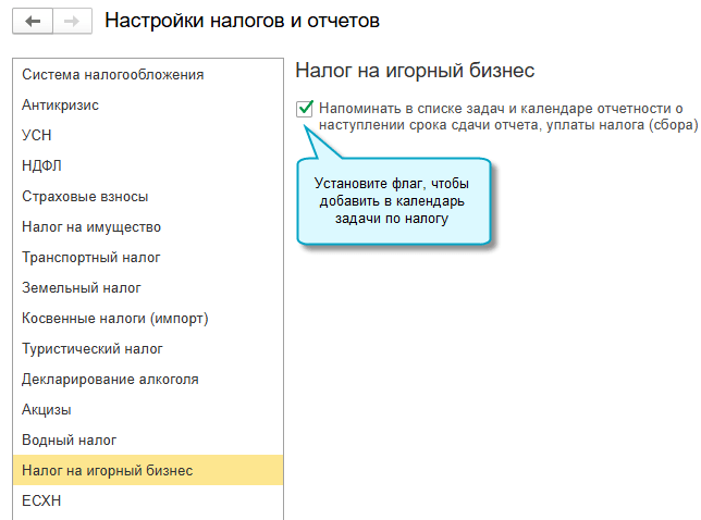Чтобы добавить задачи по налогу в календарь, перейдите к настройкам так: