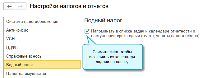 Чтобы исключить задачи по налогу из календаря, перейдите к настройкам так: