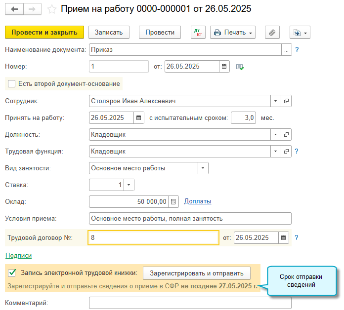 Функционал доступен, когда кадровые документы оформляются в программе.