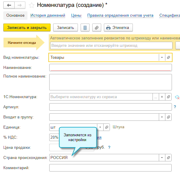 Добавлена возможность настроить, какая страна происхождения будет заполняться по умолчанию при создании карточек новых товаров.