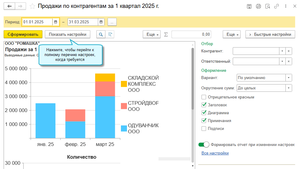 Добавлена возможность перехода к полному перечню настроек отчетов руководителя по отдельной кнопке "Показать настройки".