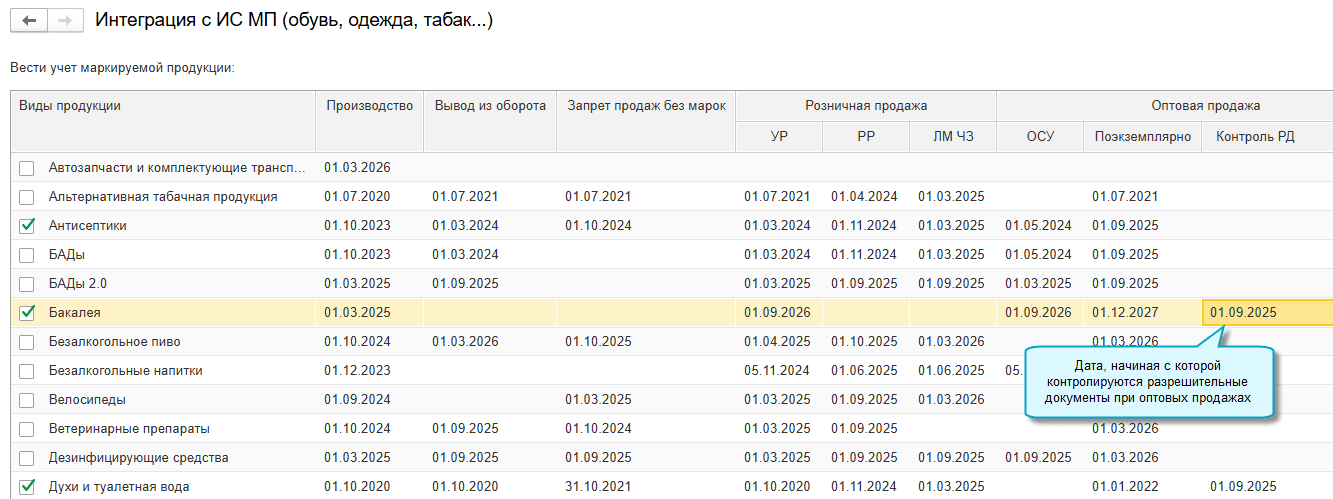 По каким товарным группам выполняется контроль РД, смотрите в таблице настроек по товарным группам