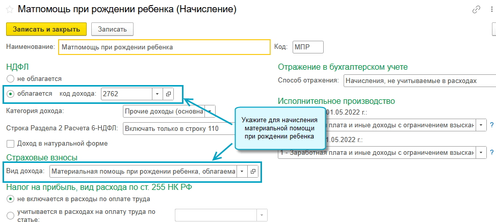 С 01.01.2026 при выплате материальной помощи при рождении ребенка не облагается НДФЛ и страховыми взносами сумма в пределах 1 млн. рублей (Федеральный закон от 23.07.2025 № 227-ФЗ).