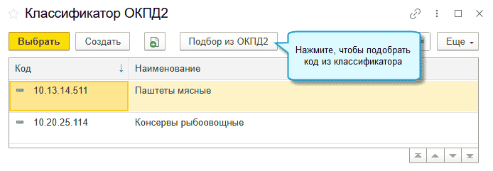Рекомендуем подбирать код по ОКПД2 из актуального классификатора. Для облачных версий подбор кода из классификатора доступен без дополнительных настроек. Для локальных (коробочных) - достаточно быть подключенным к Интернет-поддержке пользователей.