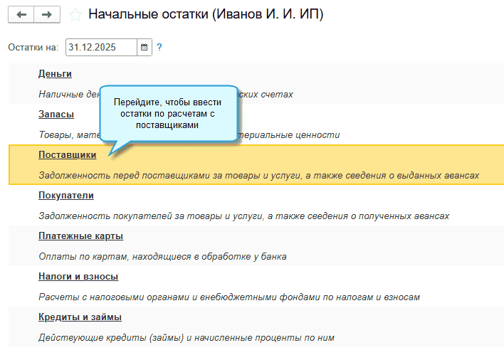 Теперь специальная задача организации напомнит о необходимости ввода остатков при начале учета в приложении.