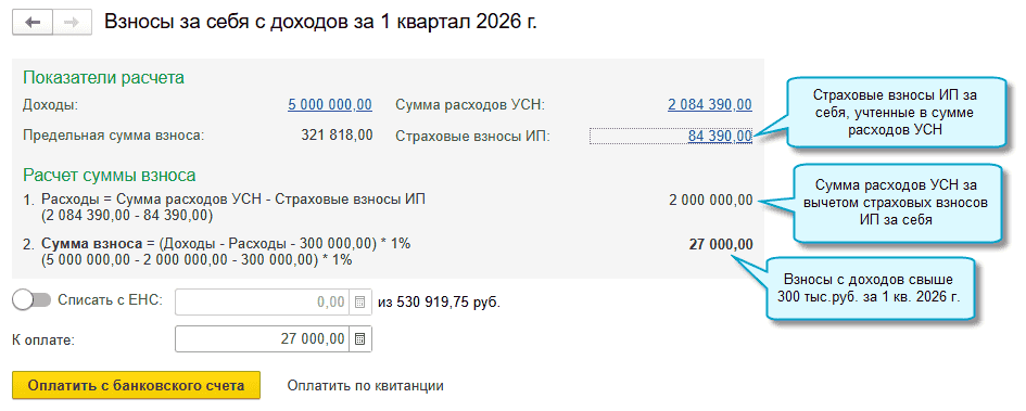С 2026 года при расчете страховых взносов ИП за себя с доходов, превышающих 300 тыс.руб., из расходов УСН исключаются страховые взносы ИП за себя (Федеральный закон от 28.11.2025 № 425-ФЗ).