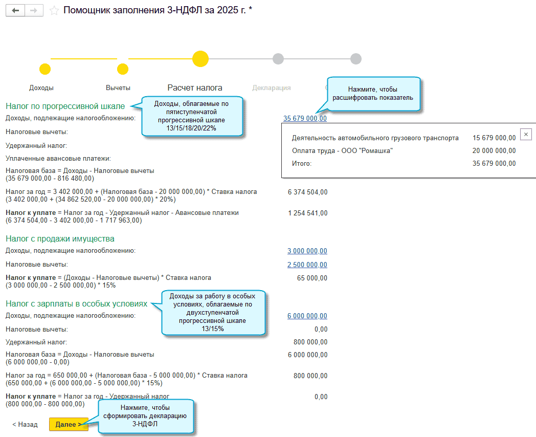 Виды доходов группируются в зависимости от применяемой шкалы НДФЛ. Расчет налоговой базы и суммы налога теперь выполняется по группам доходов. Подробнее об изменениях в декларации 3-НДФЛ за 2025 год см. здесь.