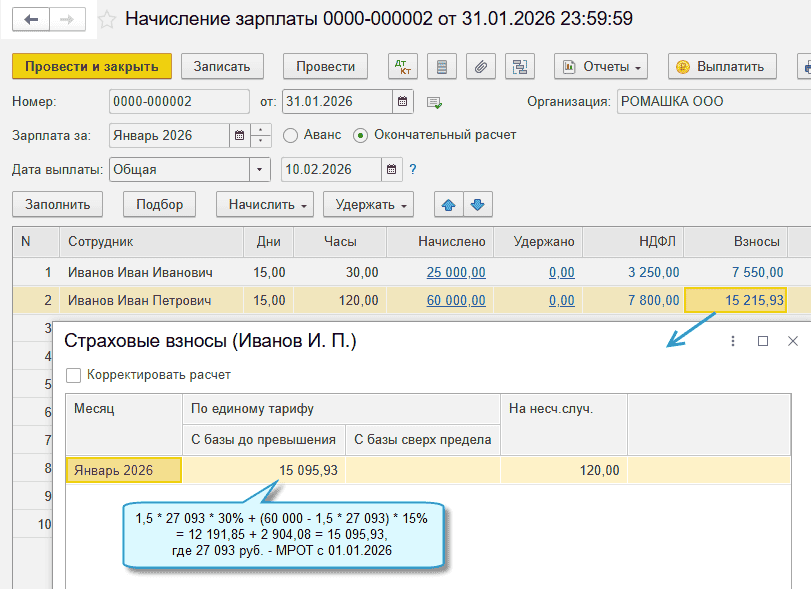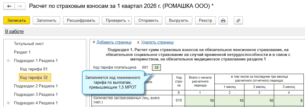 Добавлено автозаполнение расчета по страховым взносам, форма которого рекомендована Письмом ФНС России от 22.12.2025 № БС-4-11/11504@ к применению начиная с отчета за 1 квартал 2026 года. Подробнее ...