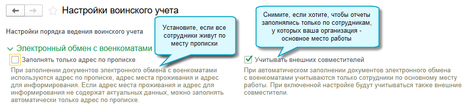 Простой интерфейс: меню "Сотрудники - Настройки - Настройка воинского учета".