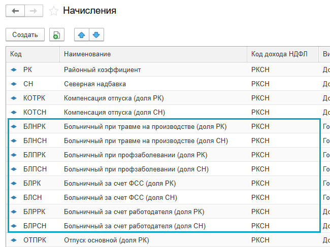 Проверьте, есть ли у вас в списке начислений "долевые" начисления для больничных. Если их нет, то потребуется создать их вручную. Подробнее ...