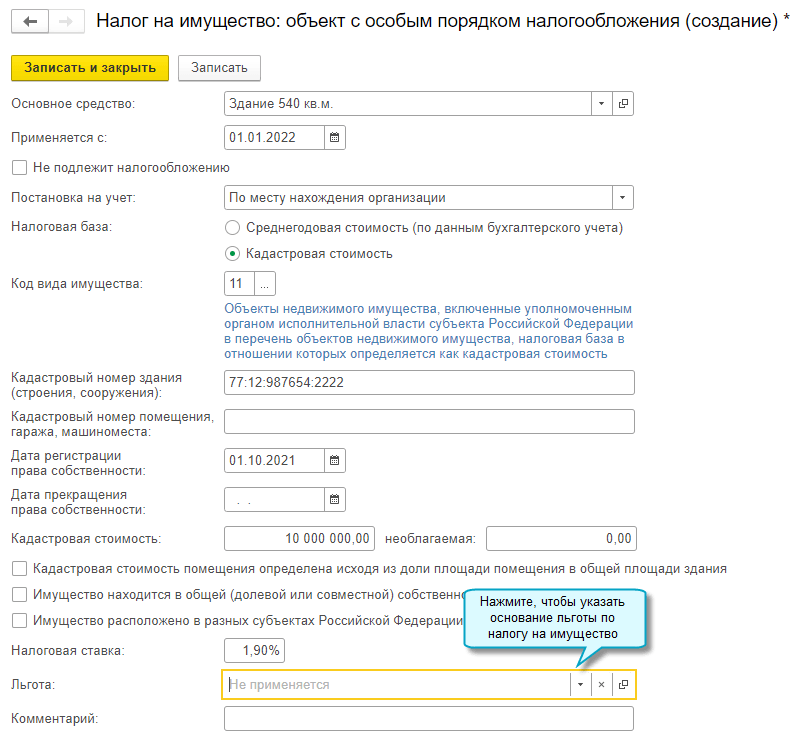 Добавлена возможность заполнить заявление о предоставлении налоговой льготы по налогу на имущество организаций. Заявление используется с 01.01.2022 при льготировании имущества, налог с которого рассчитывается по кадастровой стоимости (Приказ ФНС от 09.07.2021 № ЕД-7-21/646@).