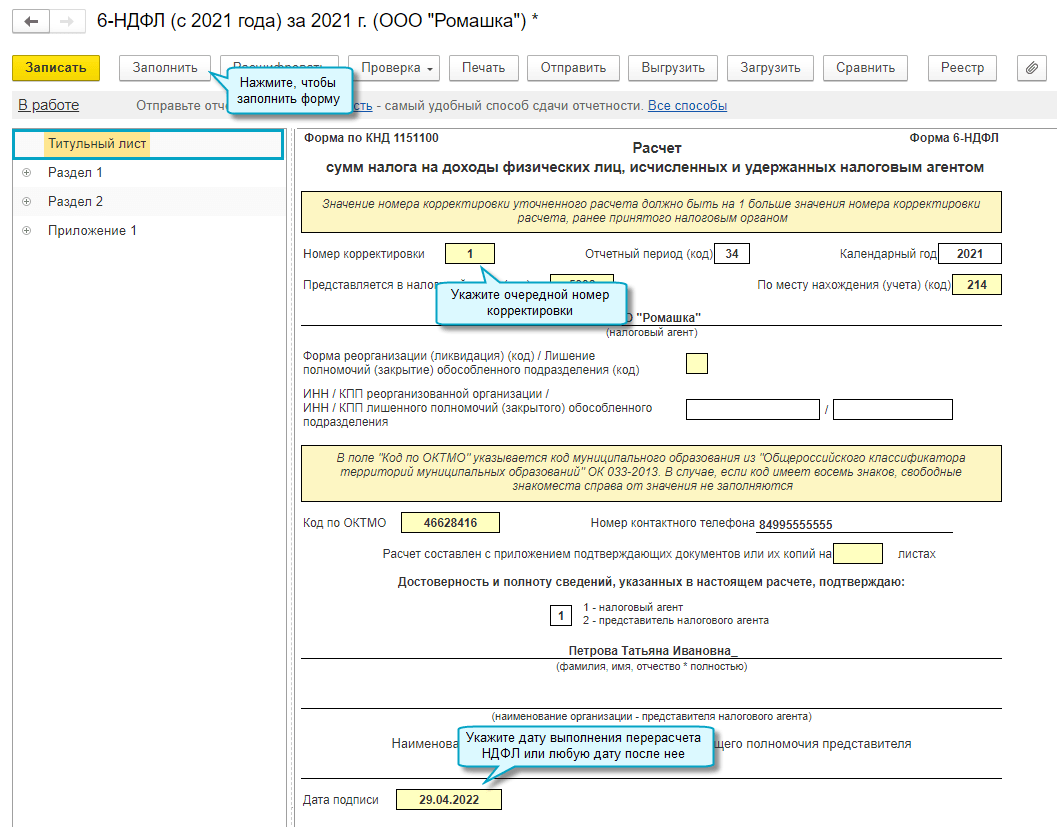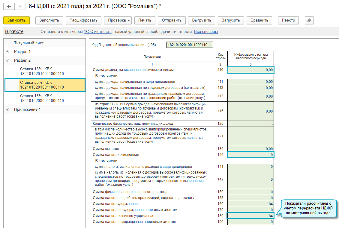 Добавлена возможность подготовить уточненную форму 6-НДФЛ за 2021 год в связи с отменой НДФЛ с материальной выгоды. Доходы в виде материальной выгоды (коды 2610, 2630, 2640, 2641), полученные в 2021 - 2023 годах, не облагаются НДФЛ (Федеральный закон от 26.03.2022 № 67-ФЗ).