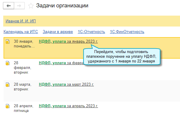 Отдельные платежные поручения формируются в задачах по расчету или уплате конкретных налогов.