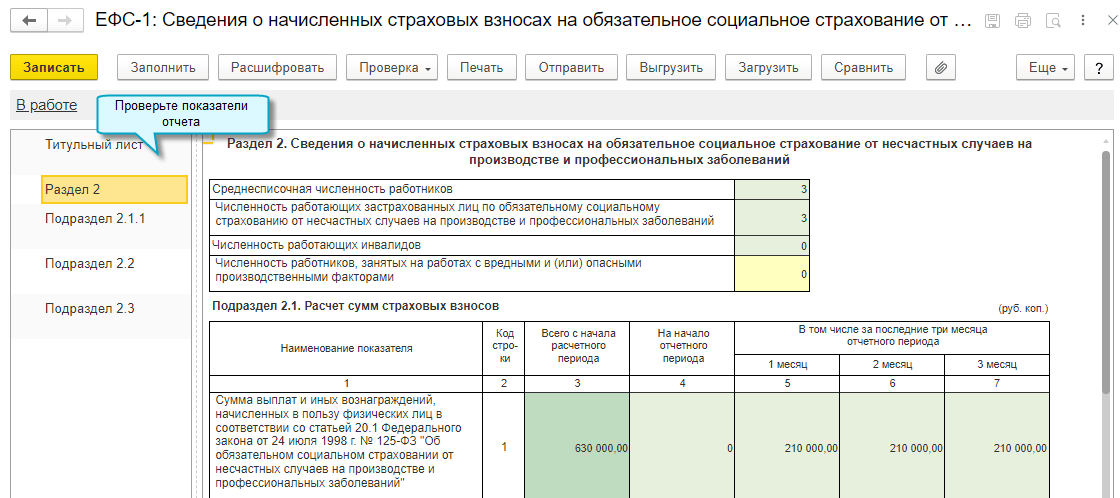 Добавлено автозаполнение раздела 2 "Сведения о начисленных страховых взносах на обязательное социальное страхование от несчастных случаев на производстве и профессиональных заболеваний" формы ЕФС-1. Это замена отмененной формы 4-ФСС. Представляется в Социальный фонд России (СФР) начиная с отчетности за 1 квартал 2023 года (Постановление Правления ПФ РФ от 31.10.2022 № 245п).