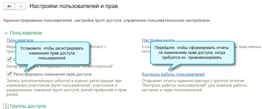 Добавлена возможность сохранять в журнале регистрации изменения прав доступа. По ним формируются отчеты администратора.
