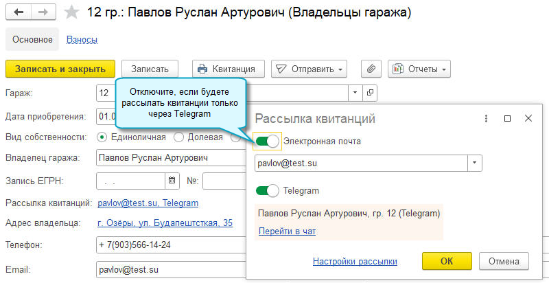 Чтобы воспользоваться, потребуется выполнить настройки и включить владельцев гаражей в рассылку.