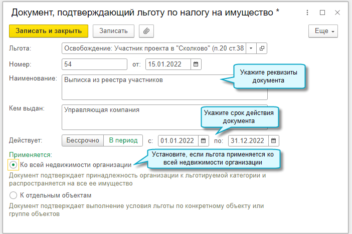Заявление заполняется как при применении общей льготы ко всей недвижимости организации, так и при льготировании отдельных объектов.